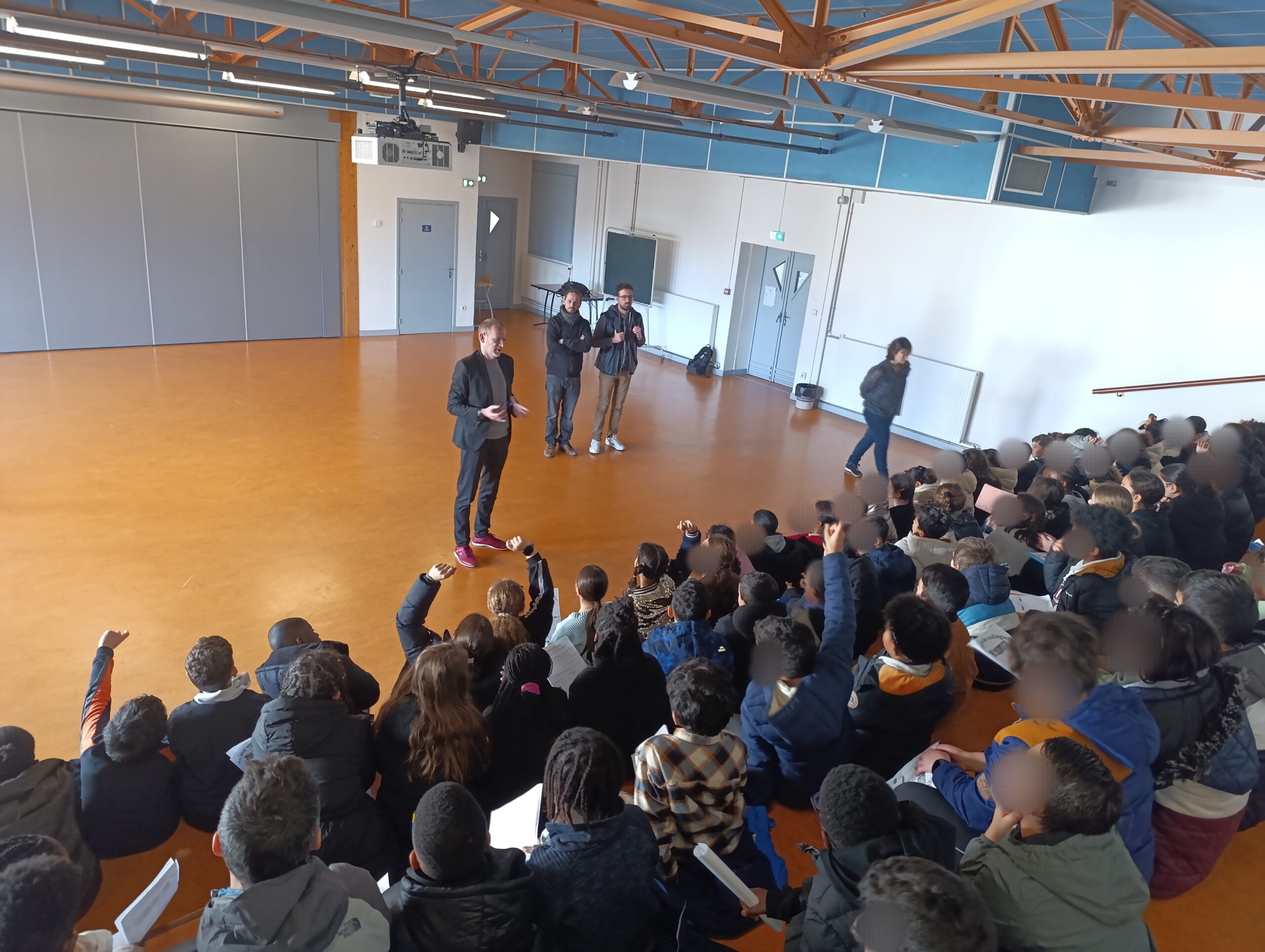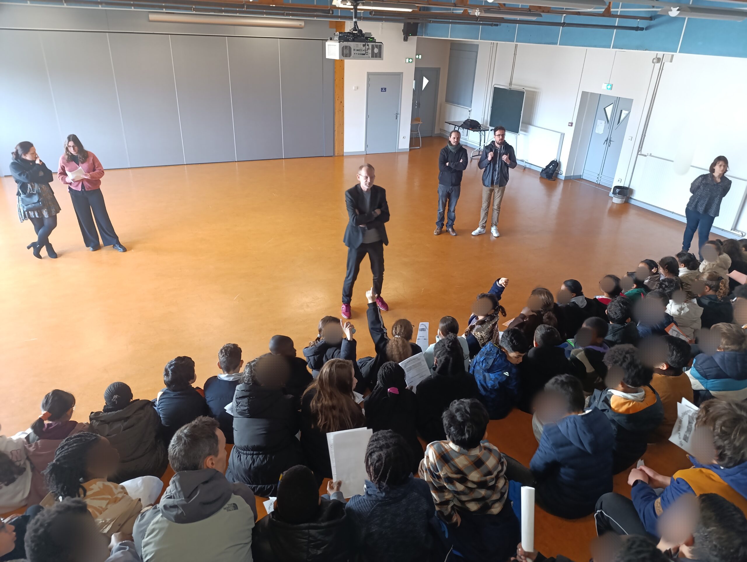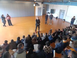Les groupes ont ensuite rejoint différentes salles de classe afin de poser des questions à leur référent, avant de tous se rassembler en salle polyvalente pour un temps d’échange collectif avec Monsieur Biguenet, Principal du collège. Ce moment privilégié a permis de répondre aux nombreuses interrogations des élèves, de revenir sur les étapes de la visite, de présenter les règles de vie au collège, les devoirs de l’élève, les évolutions liées à l’entrée en 6e ainsi que les différents métiers présents au sein de l’établissement.